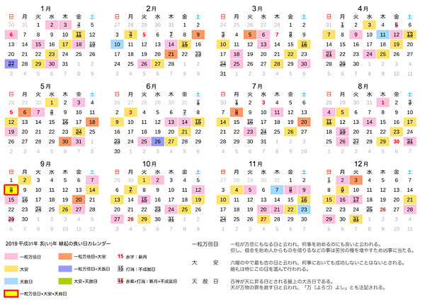 2019年の縁起のいい日のカレンダー | チルの工房【无域屋】2019 年 一 粒 万 倍 日 また3月26日(土)は「天赦日 + 一粒万倍日 + 寅の日」が重なります。.